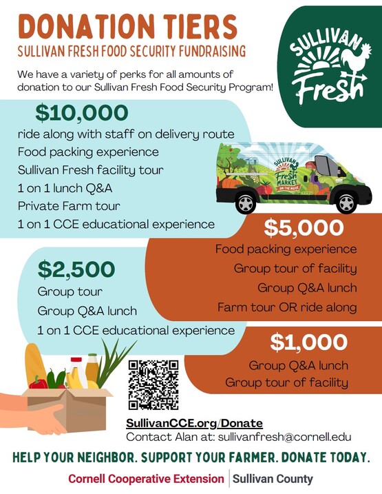 The Sullivan Fresh initiative operates two programs, the Sullivan Fresh Community Cupboard and the Sullivan Fresh Market program. Both programs work to overcome food insecurity within Sullivan County communities.